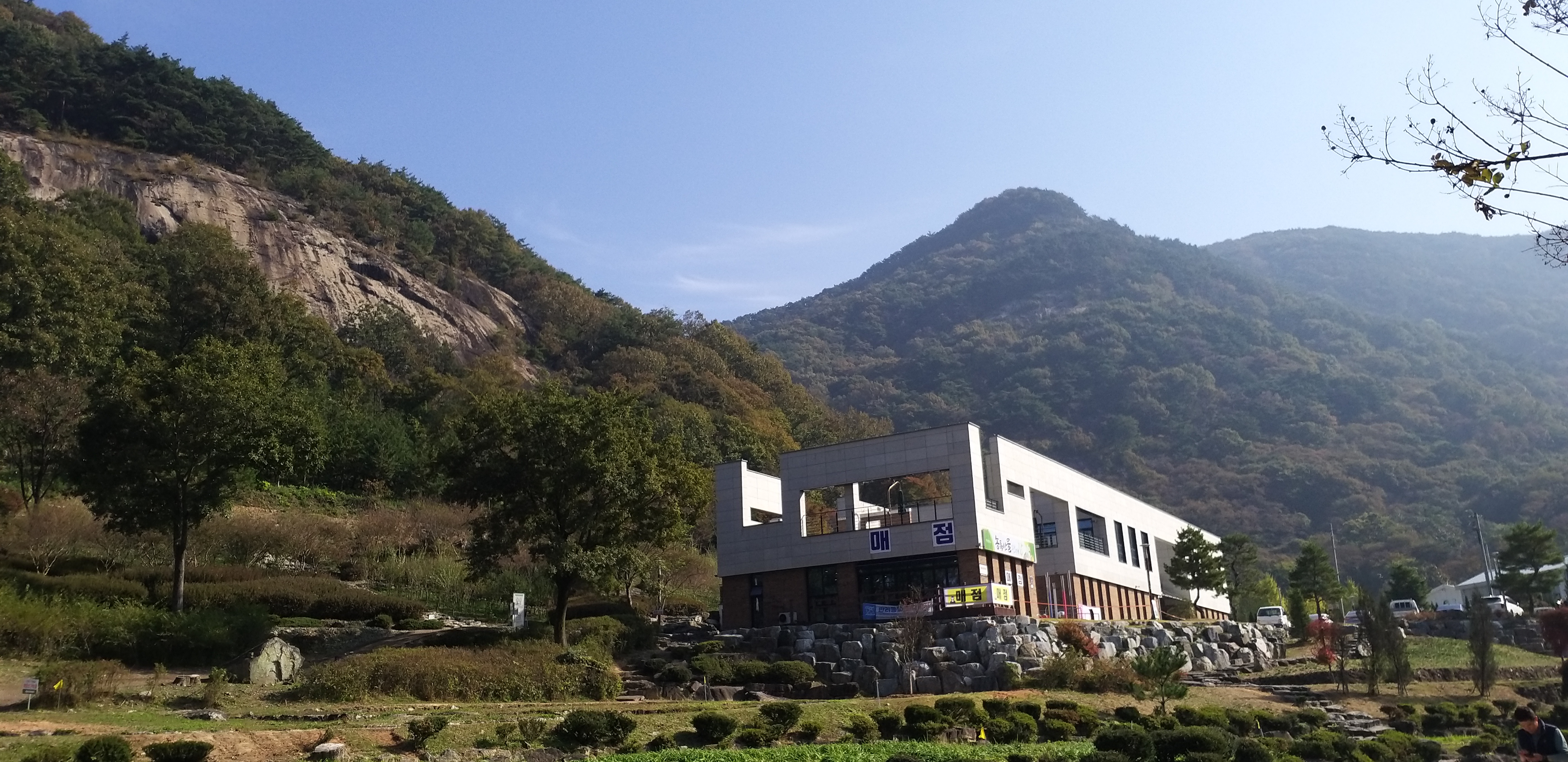 길따라 내려오면 매표소 앞이다. 하늘길 좀점에서 40분 정도 걸렸다.