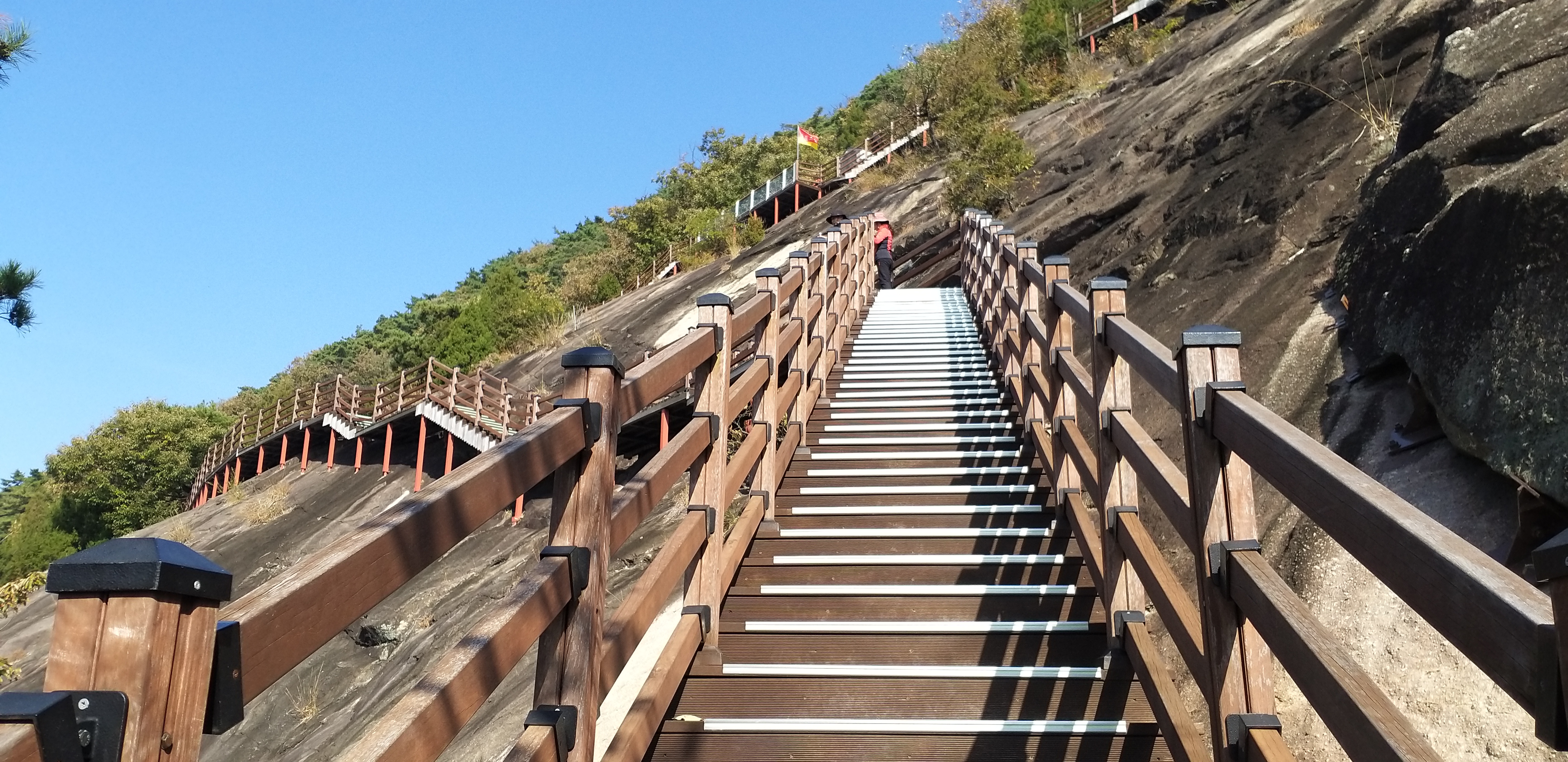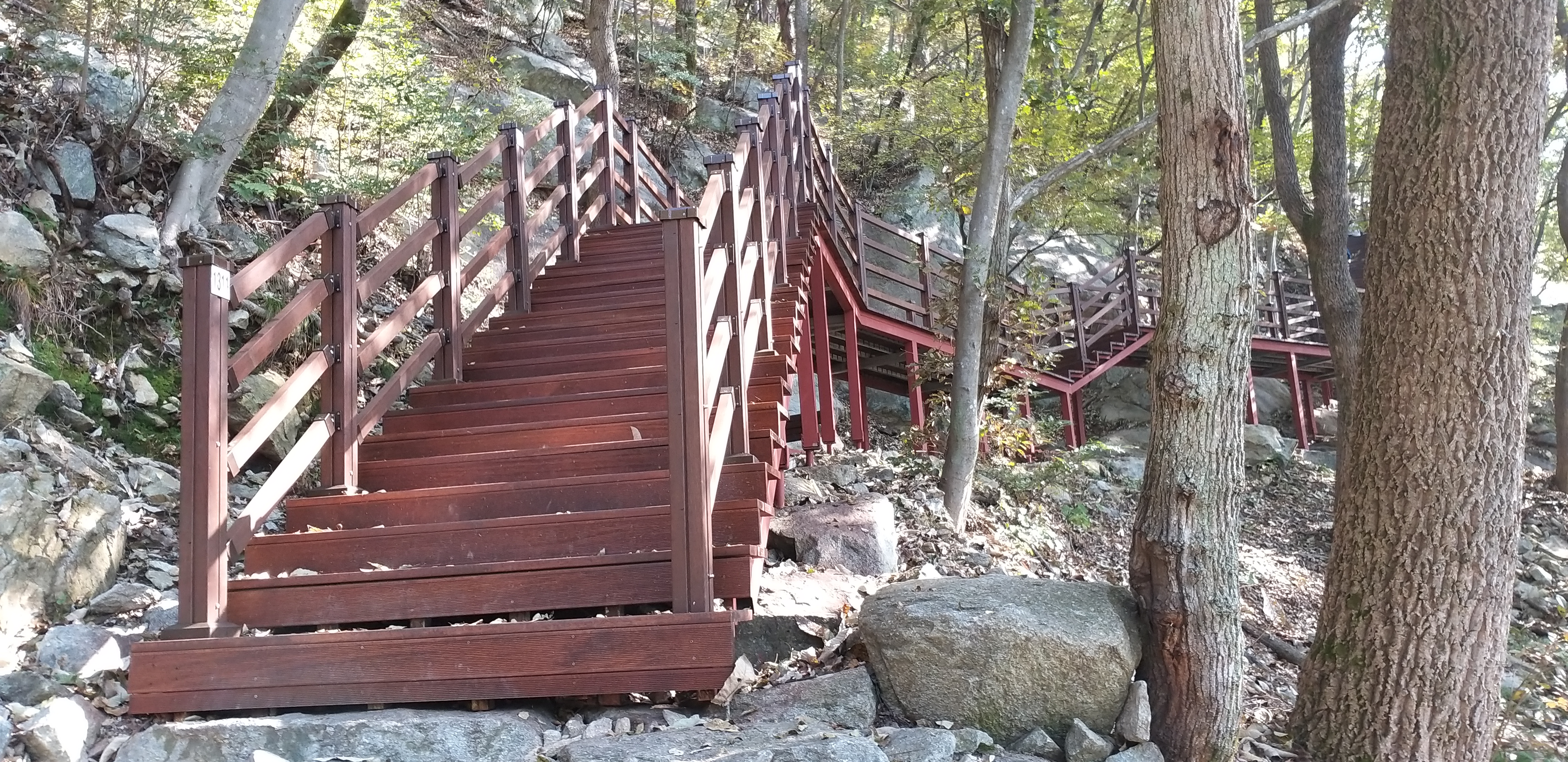 계단에는 일정한 간격으로 숫자를 적어놓아 거리를 가늠할 수 있어 컨디션을 조절하며 올라갈 수 있고 중간 중간에 쉼터도 만들어져 있다.