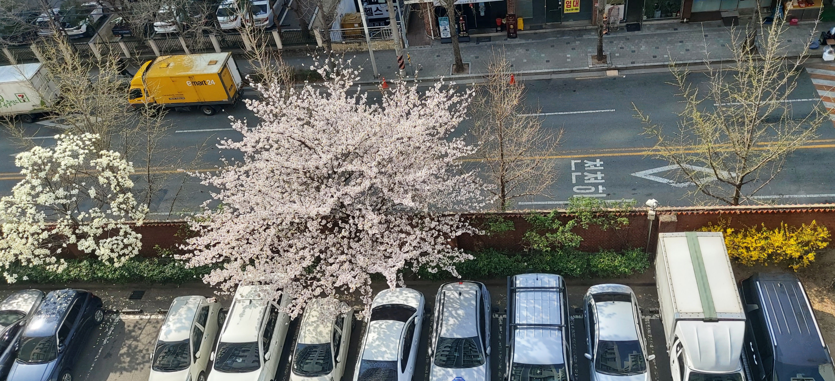 2번 출구를 나오면 벚꽃이 반겨주는 가로수길이다. 그런데 이곳 벚꽃도 지금이 절정인 듯하다. 금년엔 예년보다 벚꽃이 조금 빨리 폈다고 한다. 축제장으로 향하는 발길들이 많다.
