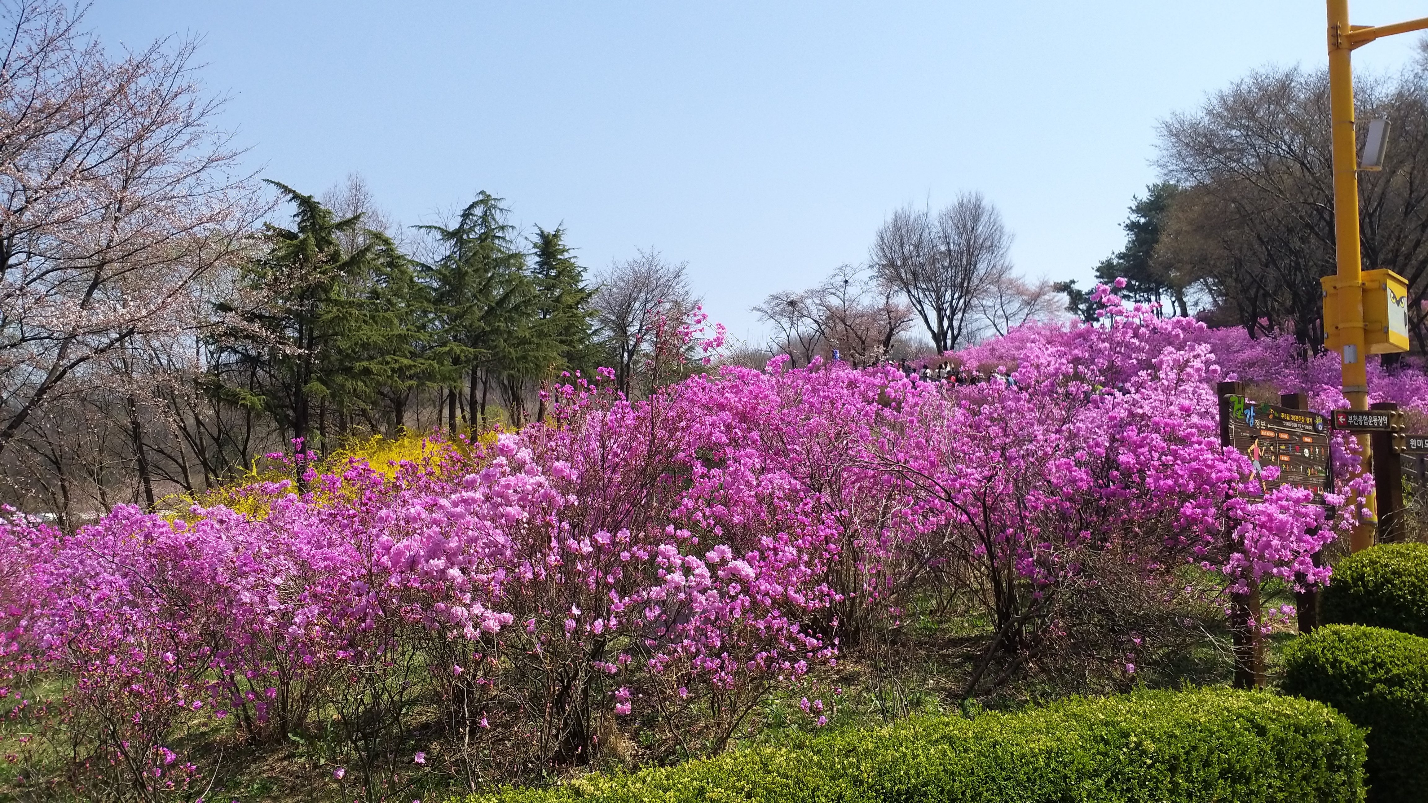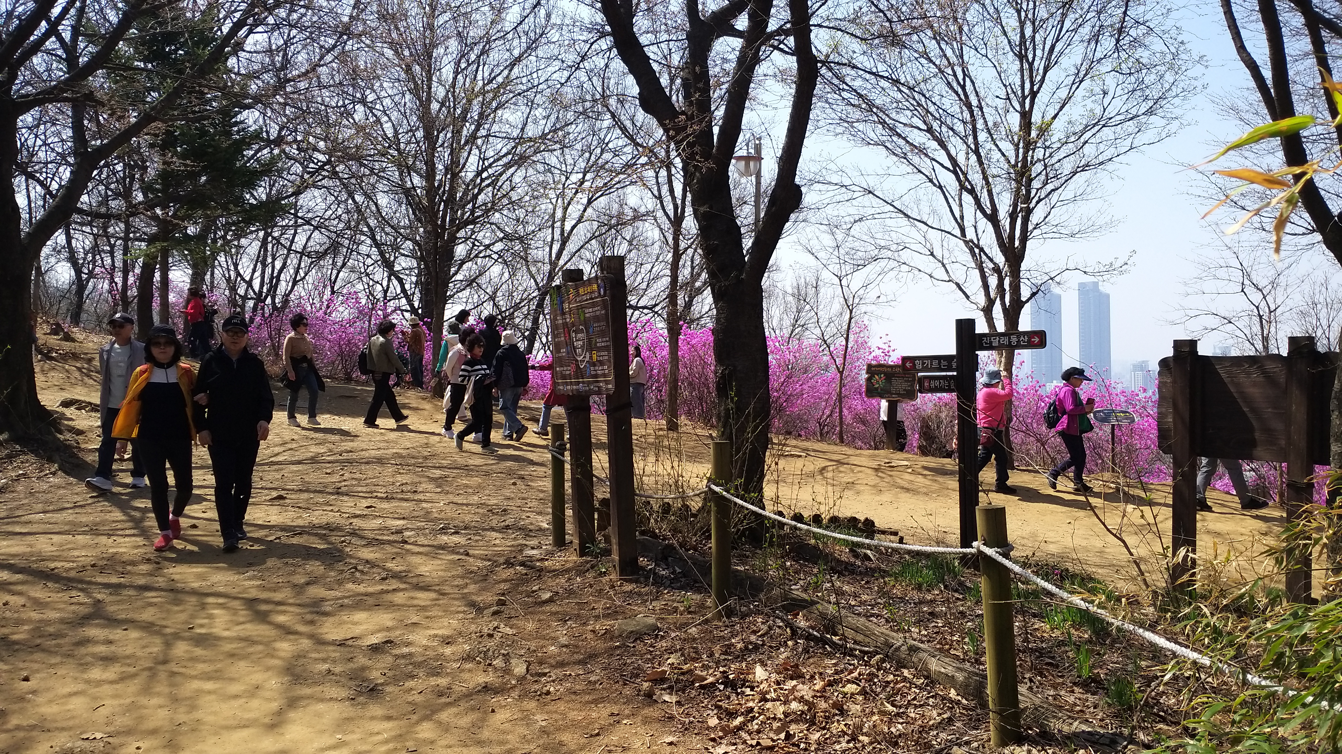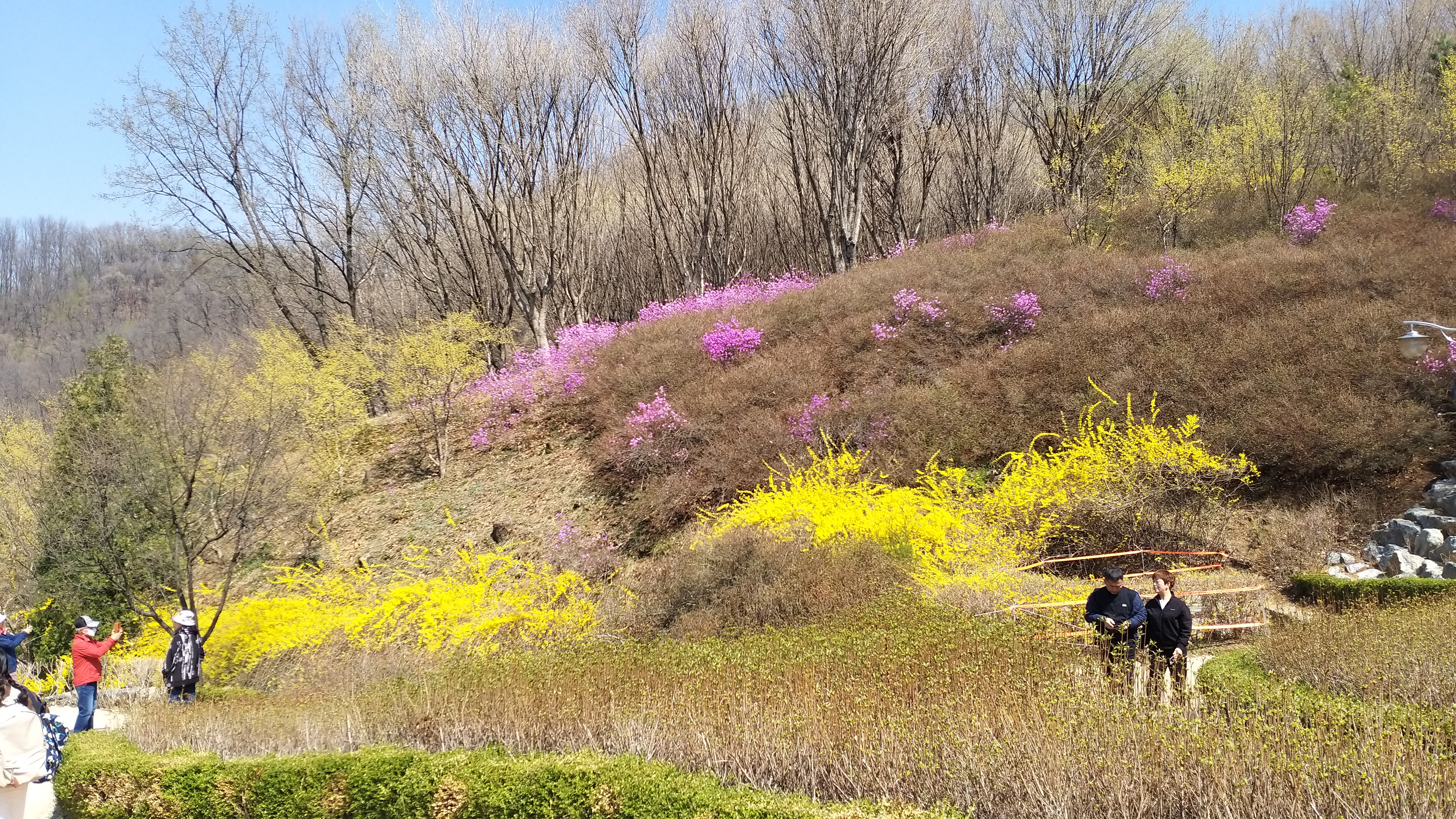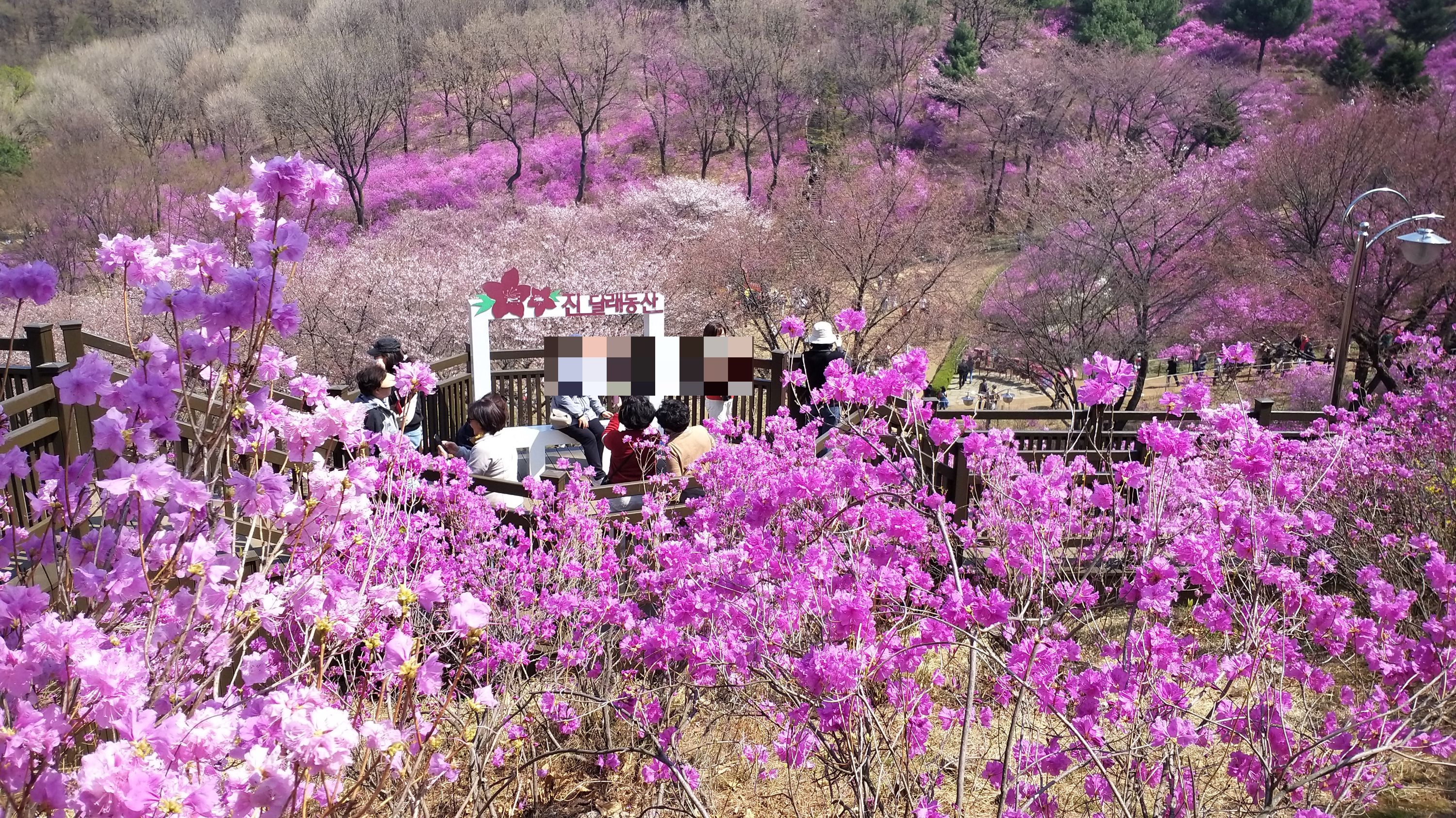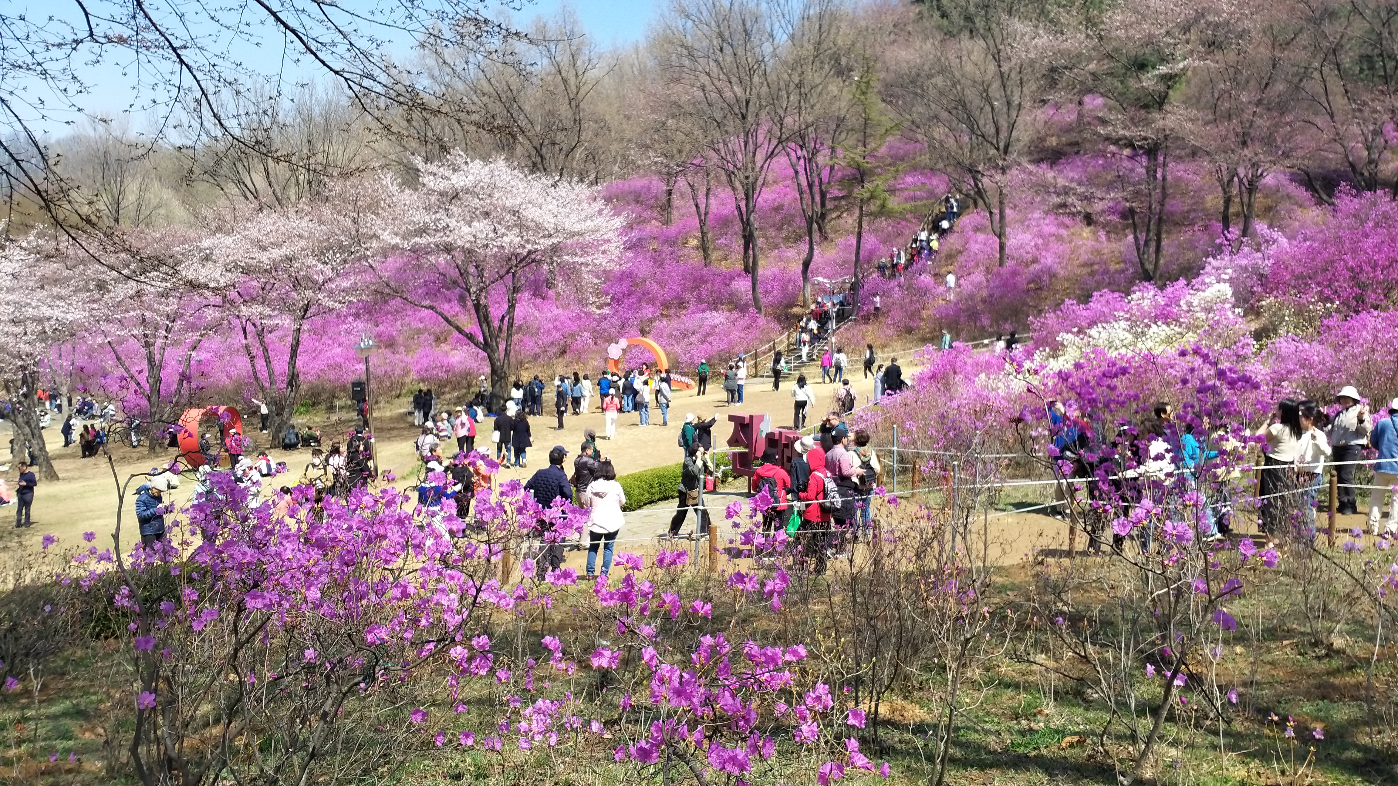 아래 진달래 동산 포토존도 사람들로 붐비고... 곳곳에 진달래와 함께 봄꽃을 즐기는 사람들이다.