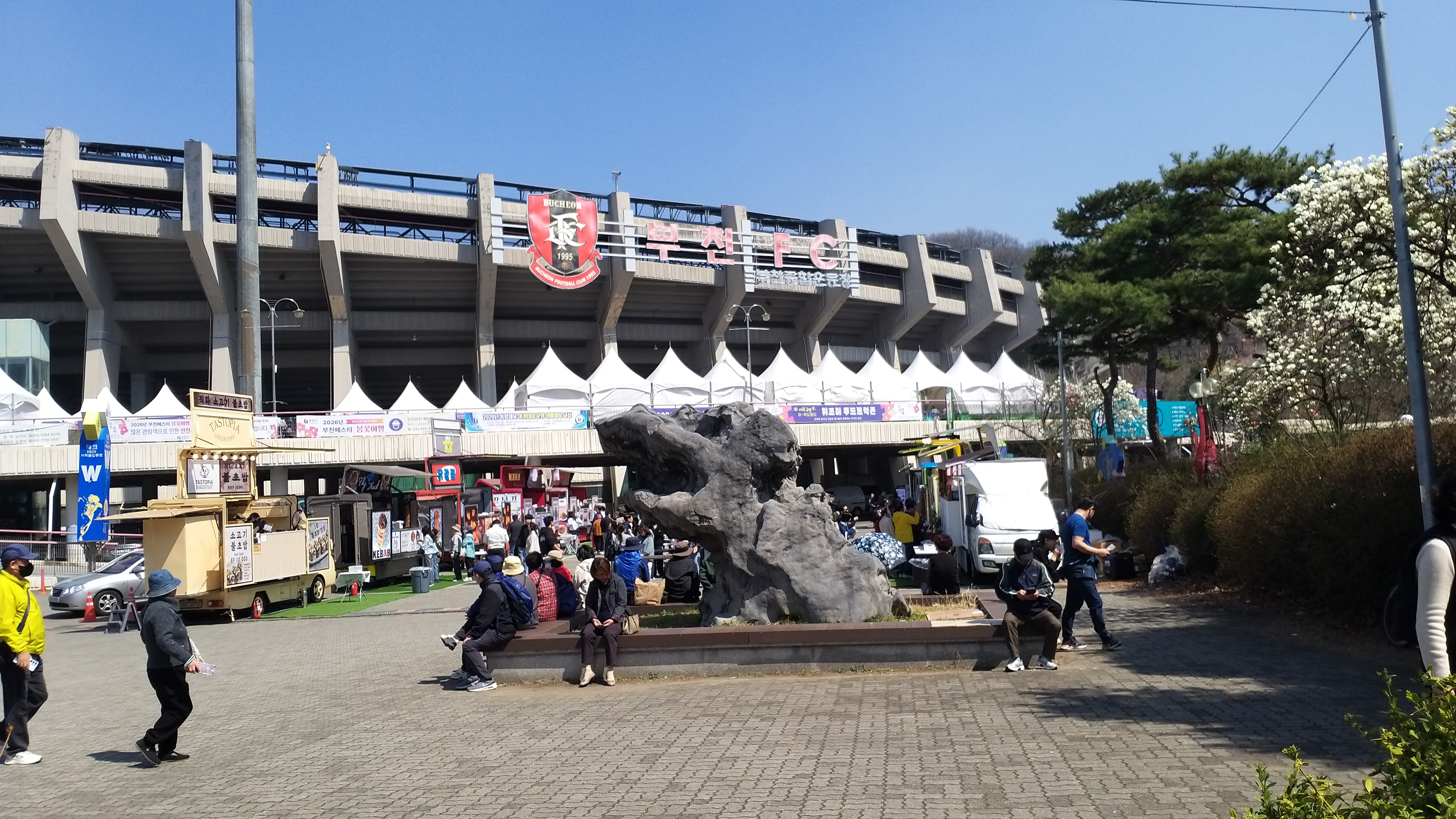 부천 종합운동장 앞인데 진달래 축제는 이번 주말(4월4~5일)이지만 관련한 행사가 지금 한창 진행중이라 복잡하다.
