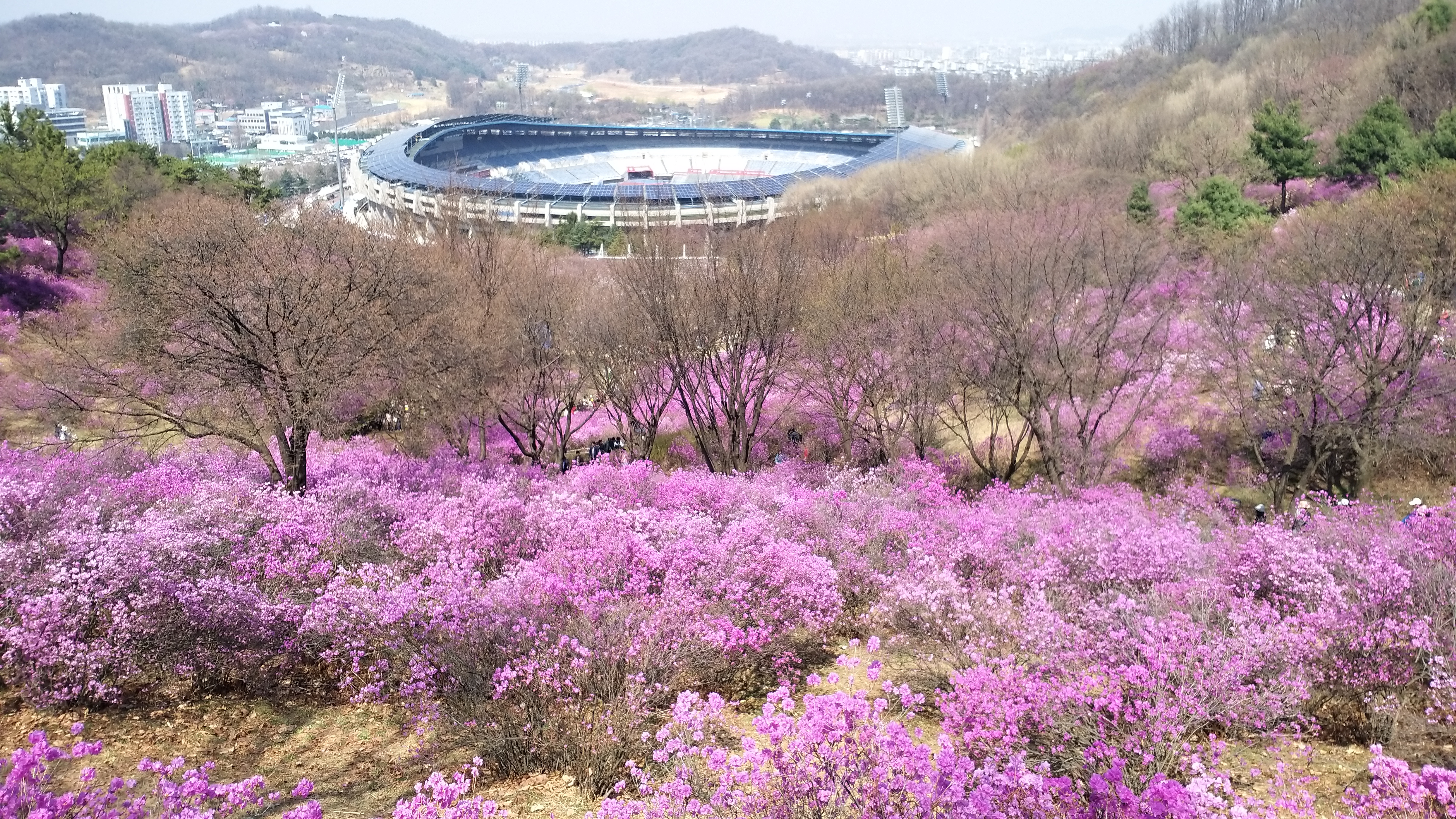 이제 봄꽃들의 잔치가 벌어지는 시기이다. 이미 매화나 산수유 등으로 시작한 봄꽃 축제는 진달래와 벚꽃 등이 이어받으며 봄이 한창 무르익어 가는 것 같다. 아파트 창너머로 개나리와 벚꽃과 목련이 한창 고운 자태를 뽐내고 있는데 부천의 원미산 진달래 동산에서는 진달래가 축제가 벌어진다는 소식에 대구에서는 좀 멀기는 하지만 KTX열차를 타고 가본다.